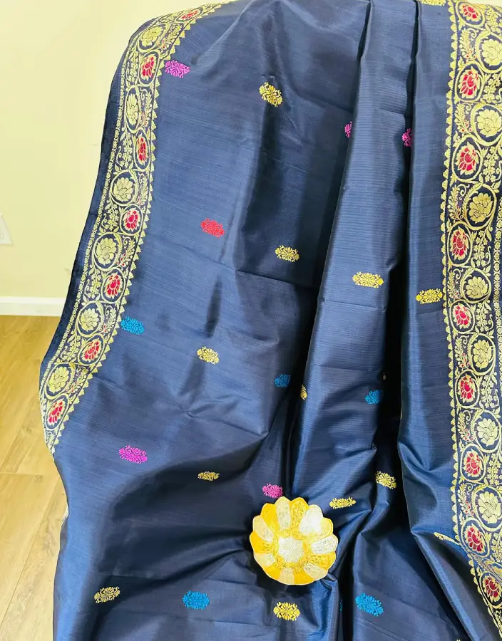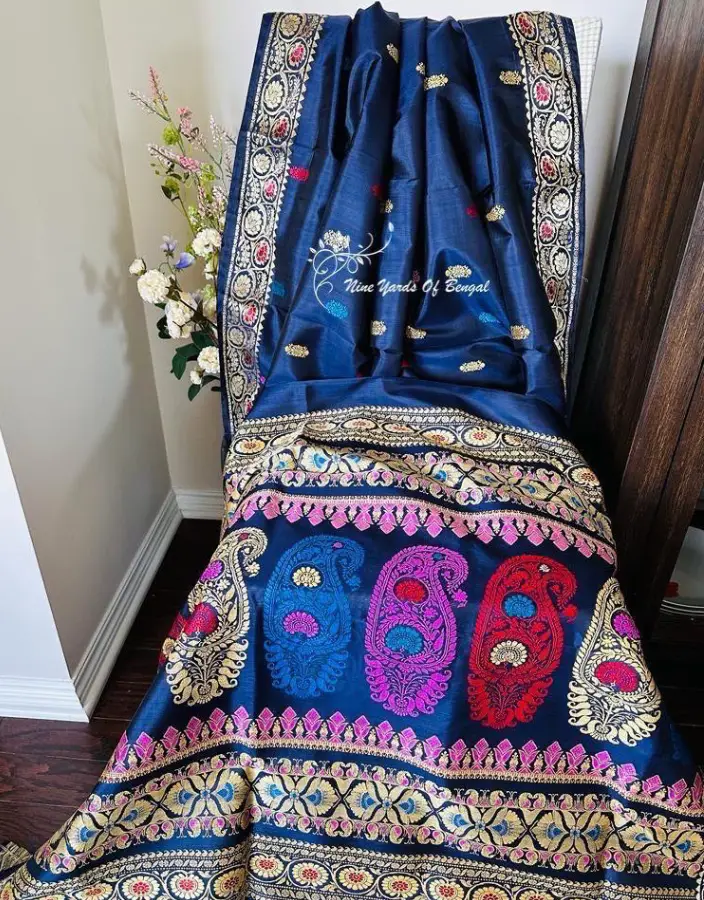 Premium Navy Blue revival Baluchari With multicolor pallu